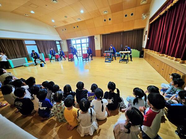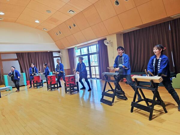 10月24日(金)の午後、若松青年商業会の太鼓チームが五平太太鼓の演奏に来てくれました。