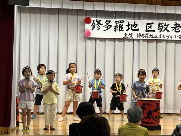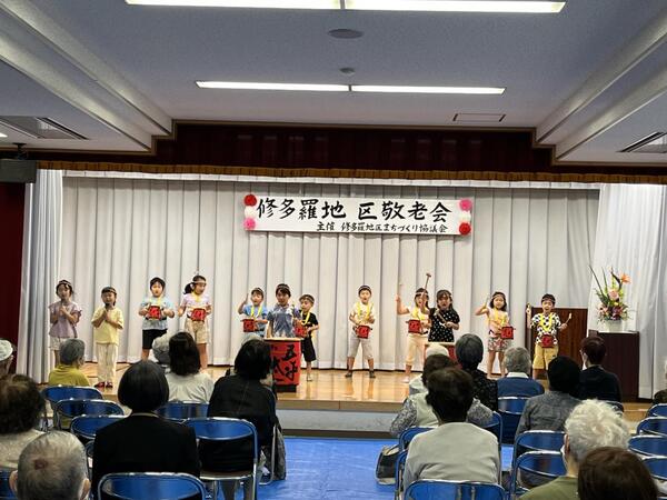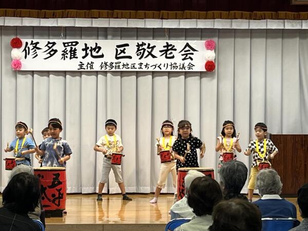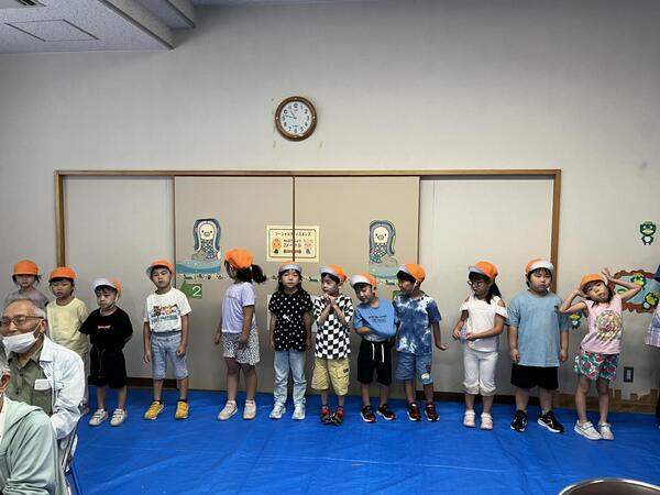 10月10日(金)、修多羅市民センターに敬老会のお祝いで年長児(ぞう組)が訪問しました。