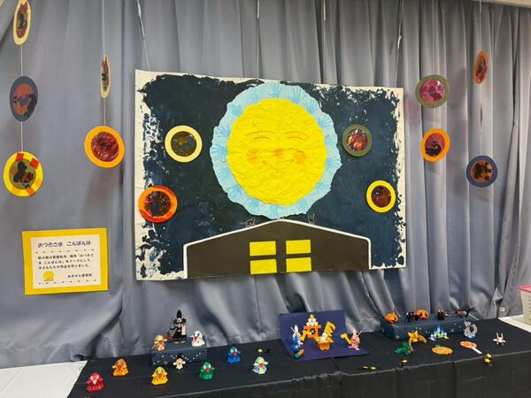 子どもたちが「おつきさま こんばんは」をテーマに作った作品を、展示していただきました。