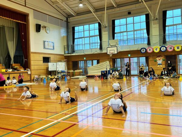天気は不安定でしたが、小学校の体育館での開催だったので、子どもたちは元気一杯に走ったり身体を動かしていました。