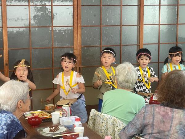 9月16日(火)、年長児ぞう組は地域の敬老会のお祝いに行きました。