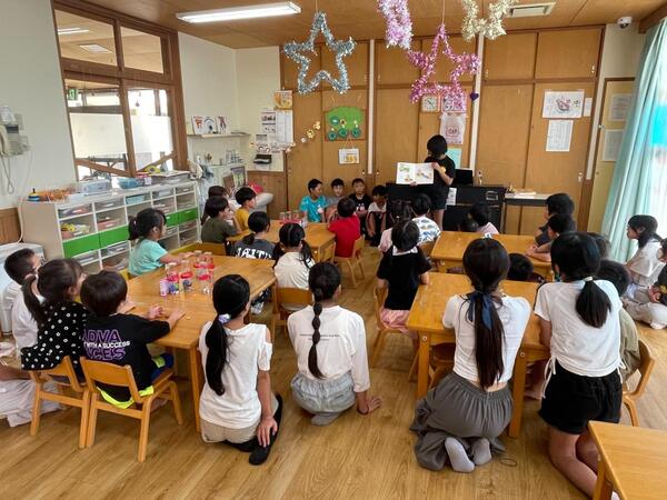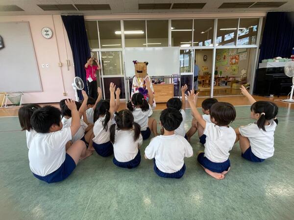 9月11日(木)、北九州市立深町小学校5年2組のお兄さんお姉さんたちが、あおぞら保育所に来てくれました。