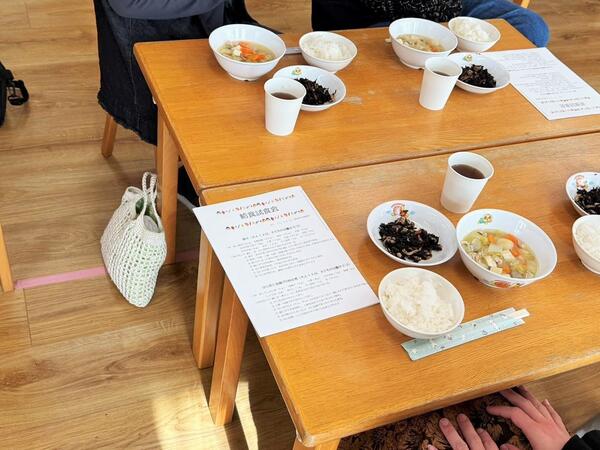 その後、給食試食会で子どもたちが食べている給食の量や味付けを、実際に食べて体験していただきました。