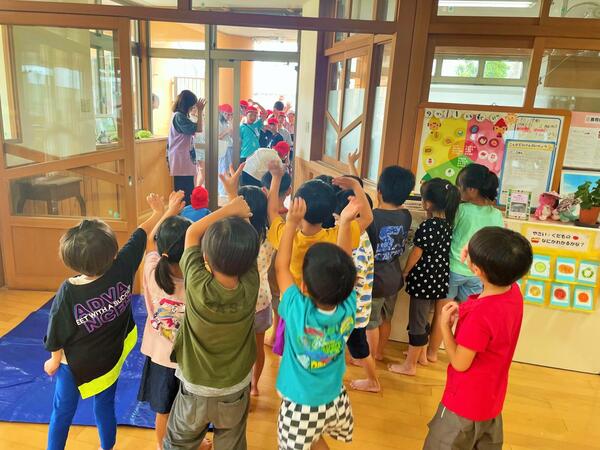 8月2日(土)、3月に卒園した子どもたちが遊びに来ました。