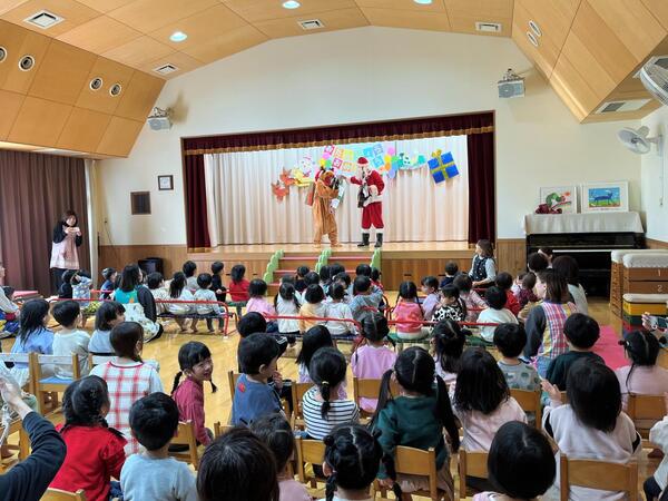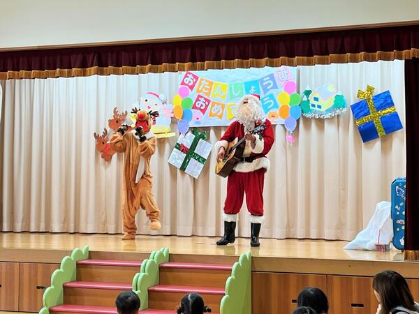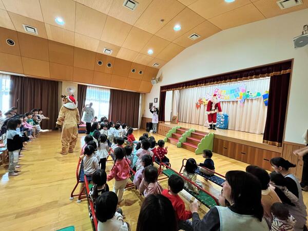 子どもたちはサンタクロースさんとトナカイさんの登場に大喜び。