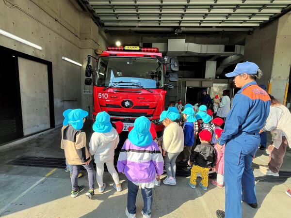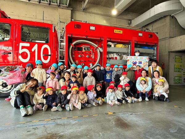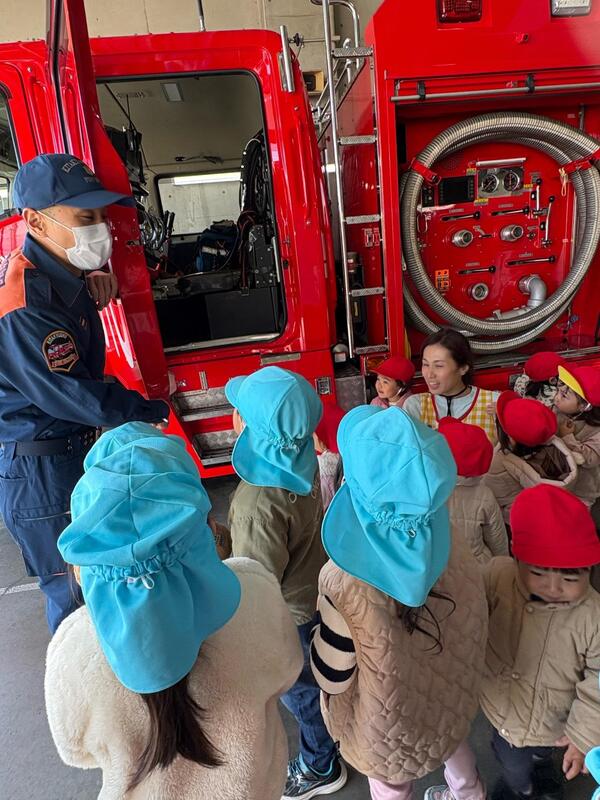 11月21日(金)に、勤労感謝の訪問で1歳児・4歳児クラスの子どもたちが若松消防署へ行きました。