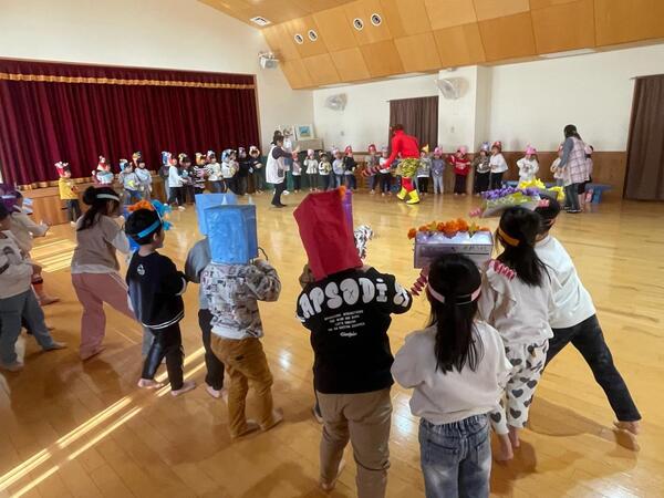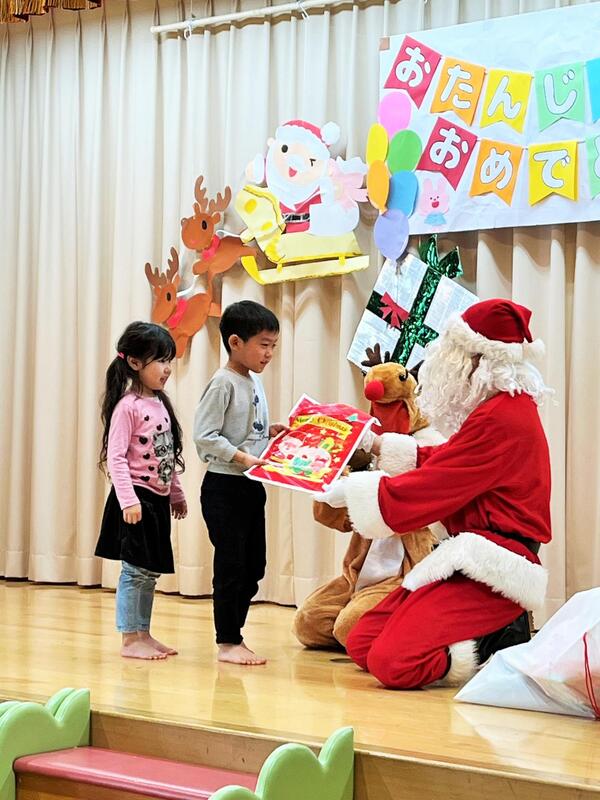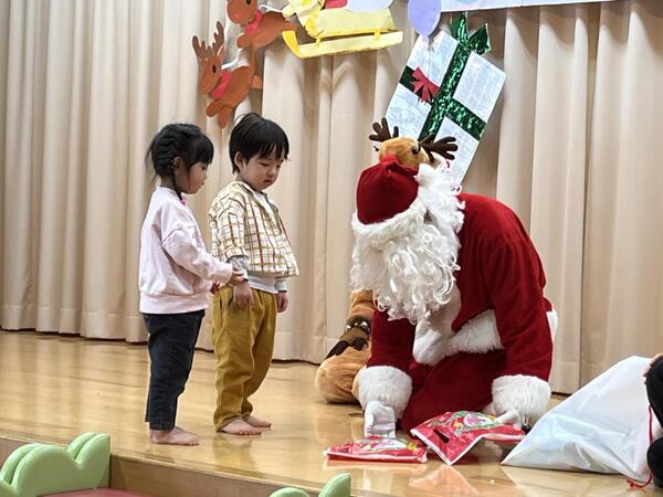 みんなでサンタさんに質問をしたり、「あわてんぼうのサンタクロース」を歌って踊ったり、最後はプレゼントをもらって嬉しそうにしていました。