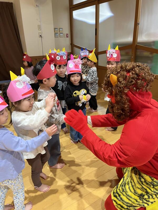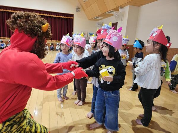 2月3日(火)は節分でした。あおぞら保育所にも赤おにさんがきて、子どもたちは心の中の「泣き虫おに」や「怒りんぼおに」をやっつけました。