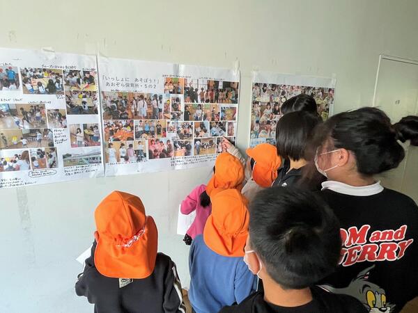 始めは緊張気味の子どもたちでしたが、5年生のお兄さんお姉さんとゲームをしたり、学校の中を案内してもらい帰る時には「またね〜」「バイバイ」と、笑顔で手を振っていました。